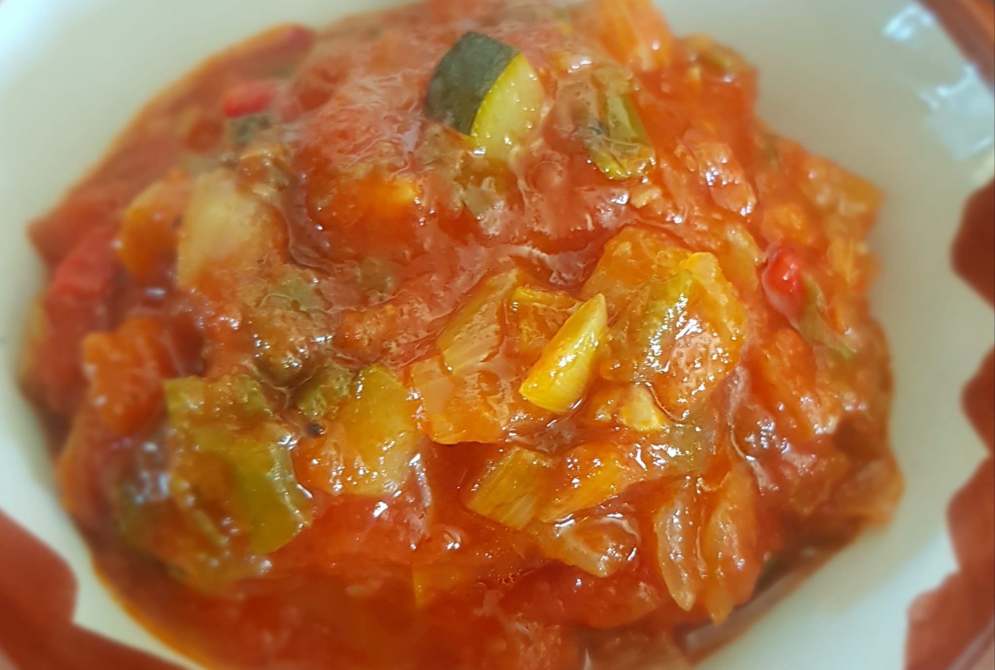 Tomate, cebolla, berenjena, calabacín, pimiento y por supuesto un toque de hierbas aromáticas y especias como son el cilantro.